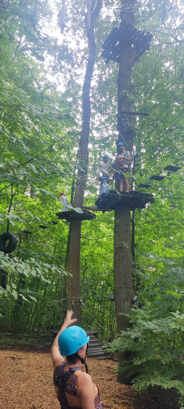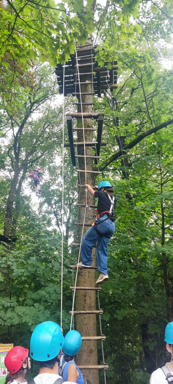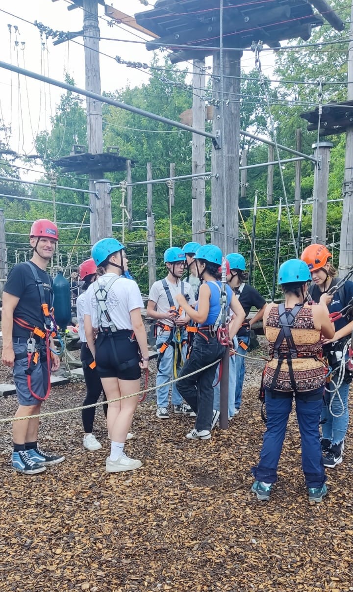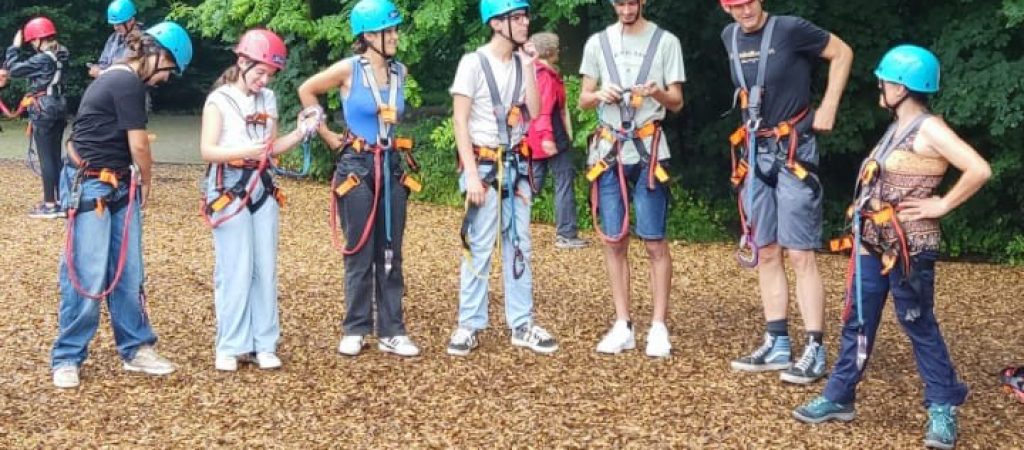 On August 14th, the team building theme group started their daily journey with an adventure at the Bielefeld ropes park. This strengthened the group’s bonds, creating a strong team spirit, which is the objective of this project. In the afternoon, they had a guided tour of Bielefeld, where some German friends showed them some parts of the city such as the local university and a fortress. At dusk they participated in a culinary workshop taught by a German chef where they learned again to use their organizational and teamwork skills.