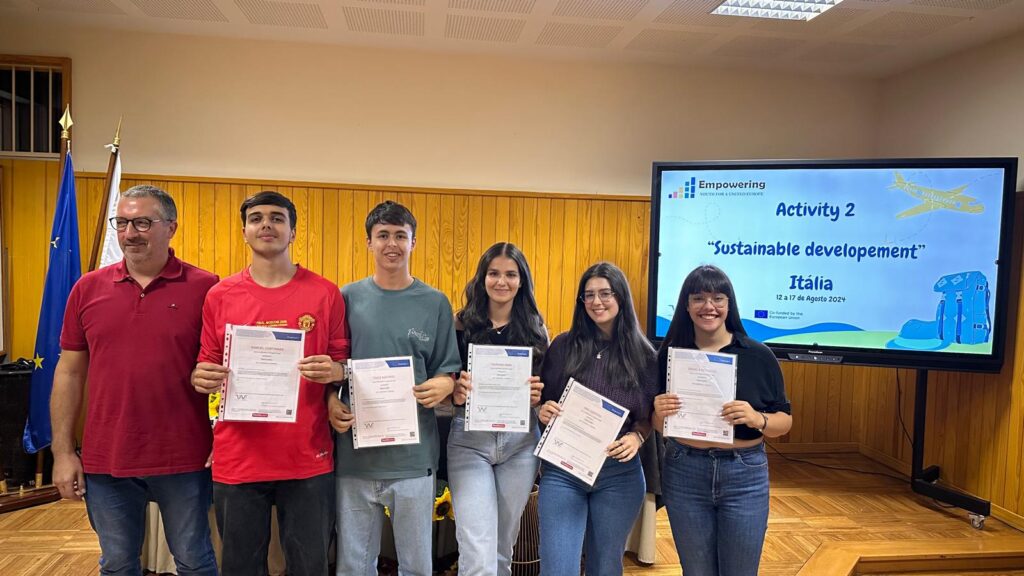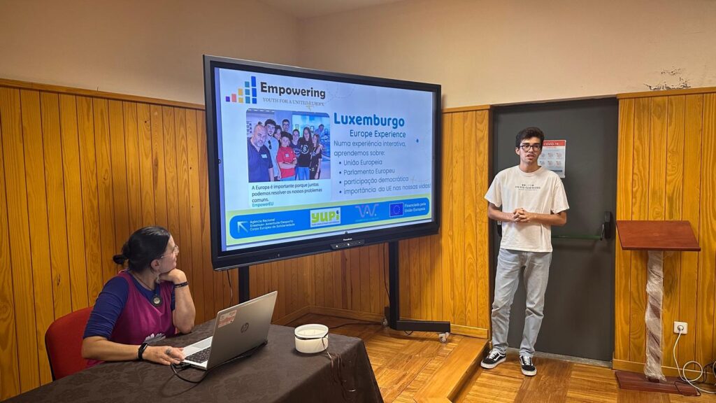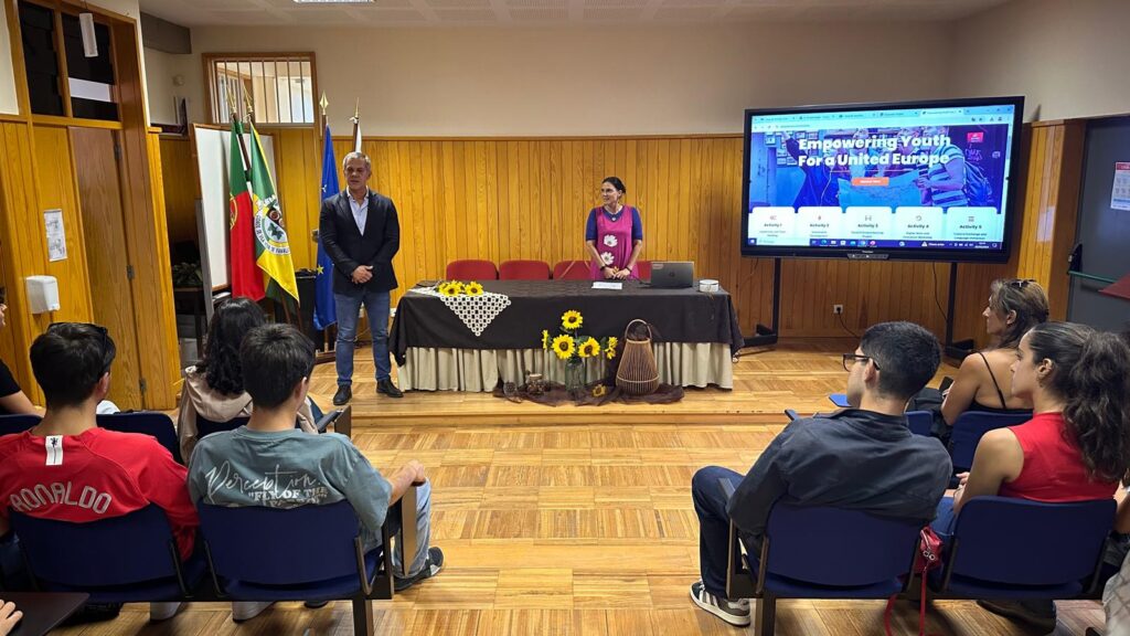 On September 20th, in the auditorium of the Terras do Ave Basic School, the dissemination action of the Empowering Youth for a United Europe Project took place, which took place from August 9th to 18th. The dissemination was in charge of the participants, under the watchful eye of the companions, who made a description of the itinerary, what learning they carried out and what impact this experience had in personal terms, and, who knows, in the future, in professional terms. This initiative was attended by some partners and institutions of the community, such as YUPI and the Municipality of Vila Nova de Famalicão, represented by Mrs. Councillor for Youth. This initiative, part of the DiscoverEU initiatives, is aimed at 18-year-old students, who no longer attend the Terras do Ave School Group, however, they are young people inserted in our community, who, in the future, may join the team for the development of initiatives like these, or others, for the benefit of the AETA community.